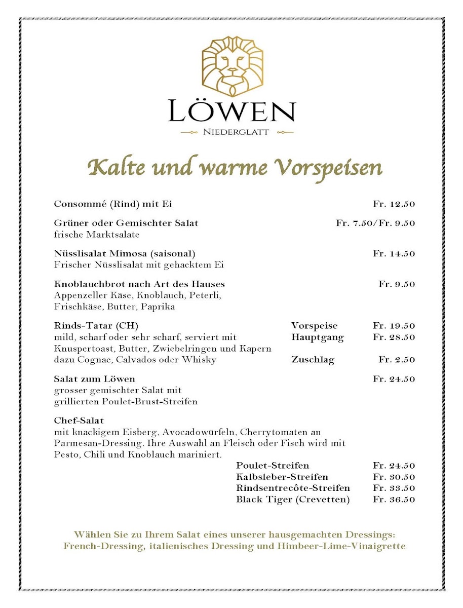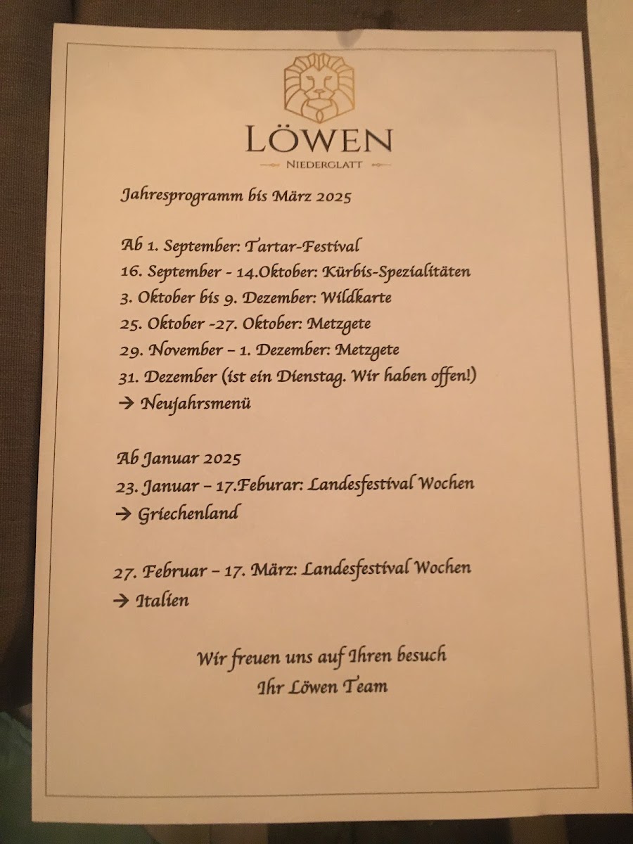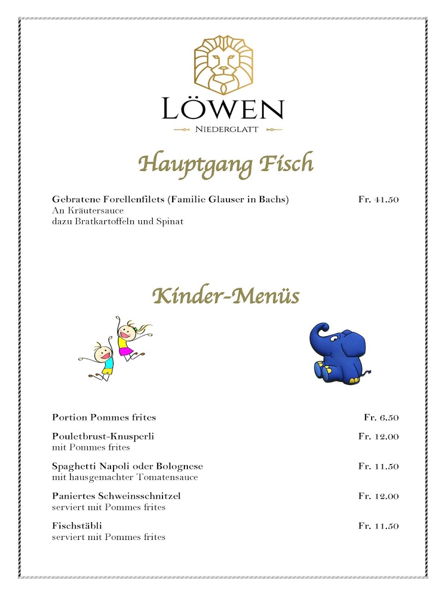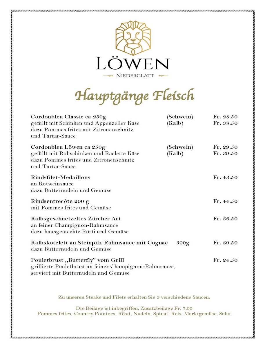 Welcome to Löwen Niederglatt, a delightful culinary gem nestled in the heart of Niederglatt, Switzerland. Located at Grafschaftstrasse 2, this charming establishment boasts a perfect blend of traditional Swiss cuisine and warm hospitality. With a reputation for its solid menu and inviting atmosphere, Löwen Niederglatt is a must-visit for both locals and visitors alike.